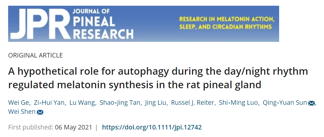 5月6日,国际著名期刊《Journal of Pineal Research》(一区,IF=14.528)在线发表了必赢线路检测中心沈伟教授课题组完成的题为“A hypothetical role for autophagy during the day/night rhythm regulated melatonin synthesis in the rat pineal gland”的研究论文,首次揭示了自噬调控褪黑素合成的潜在分子机制。