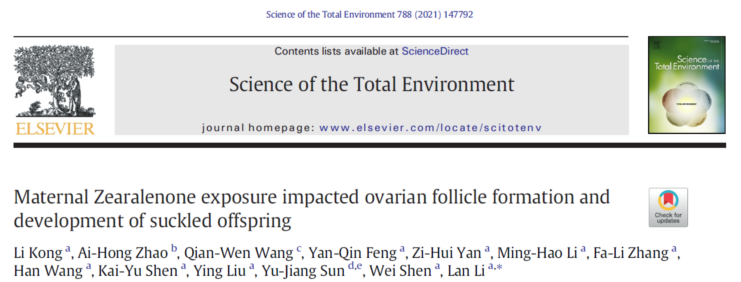 原文链接:Maternal Zearalenone exposure impacted ovarian follicle formation and development of suckled offspring. Science of the Total Environment. 2021, 788: 147792. doi: 10.1016/j.scitotenv.2021.147792