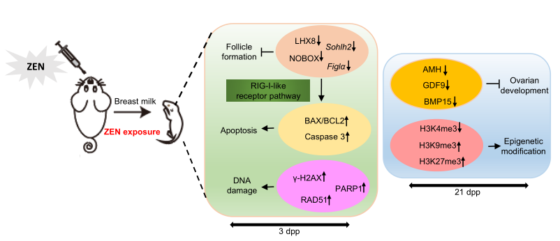 图:ZEN暴露母鼠乳汁影响小鼠原始卵泡形成和青春期发育的分子机制